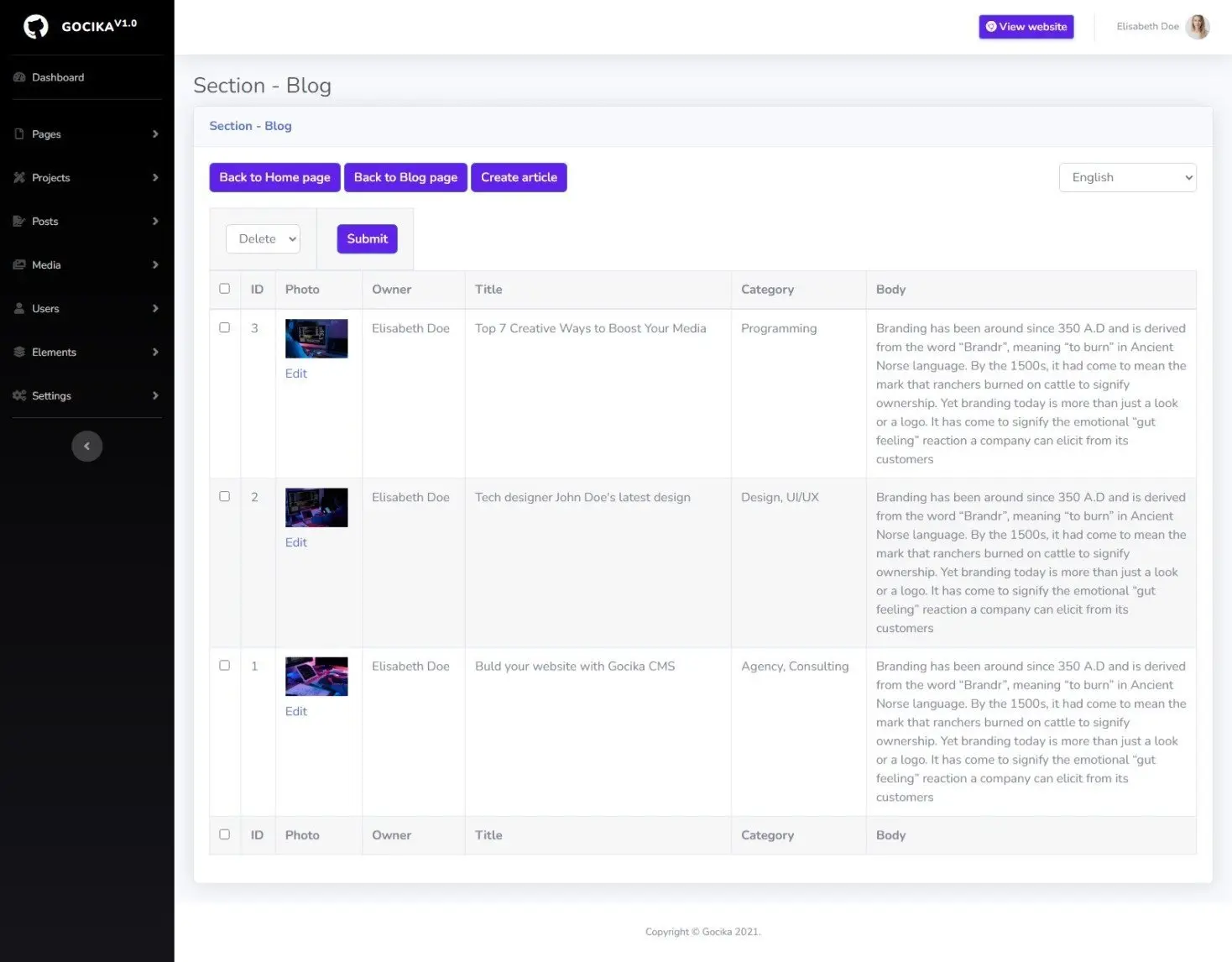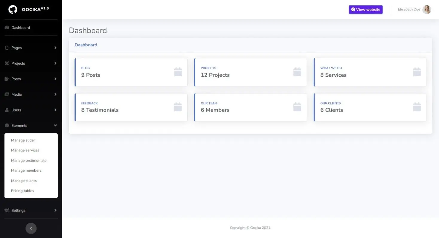 It is a powerful modern project for any website. You can boost your business using GociCMS.